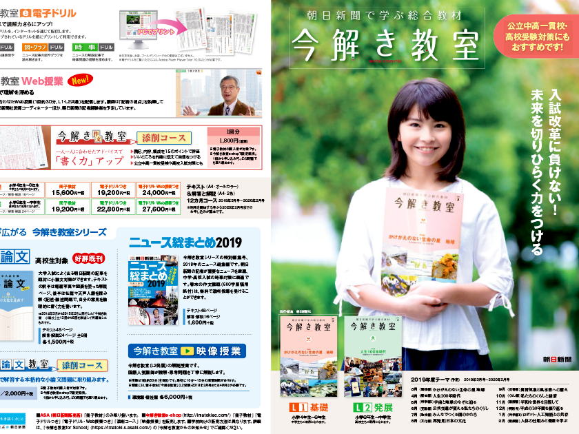 今解き教室」は、朝日新聞に掲載された記事、写真、図表などを活用して、現代社会が抱える問題について考える総合学習教材です。